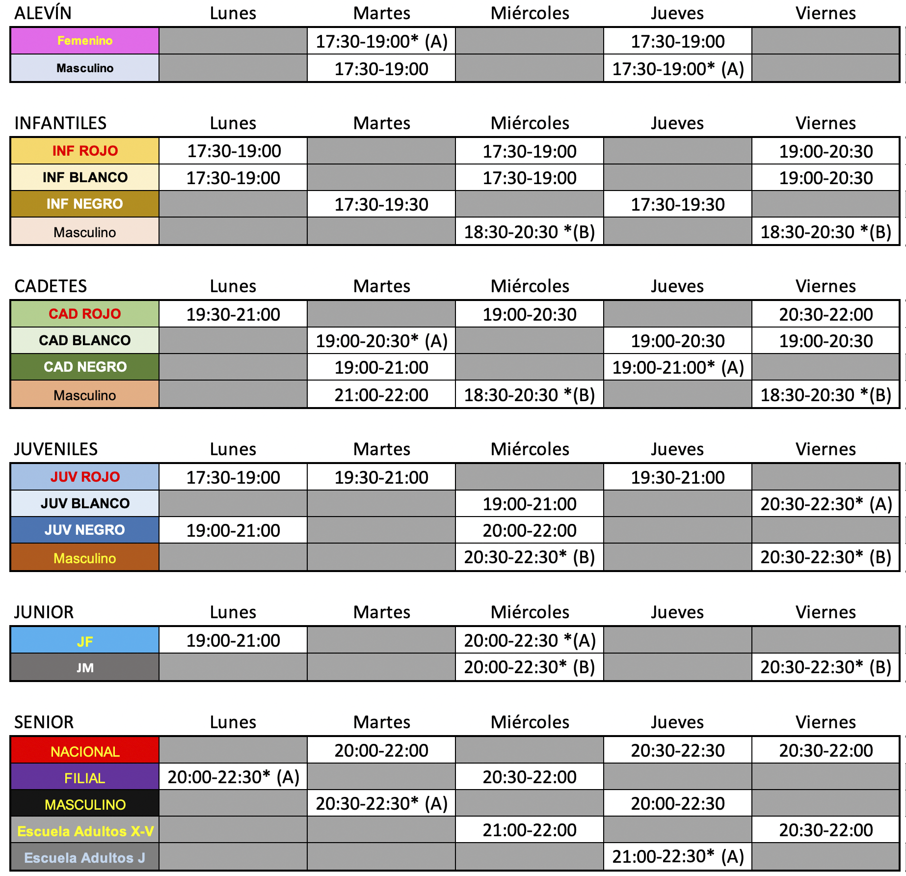 Todos los entrenamientos serán en el Pabellón Eduardo López Mateo (velódromo) salvo los marcados con *.