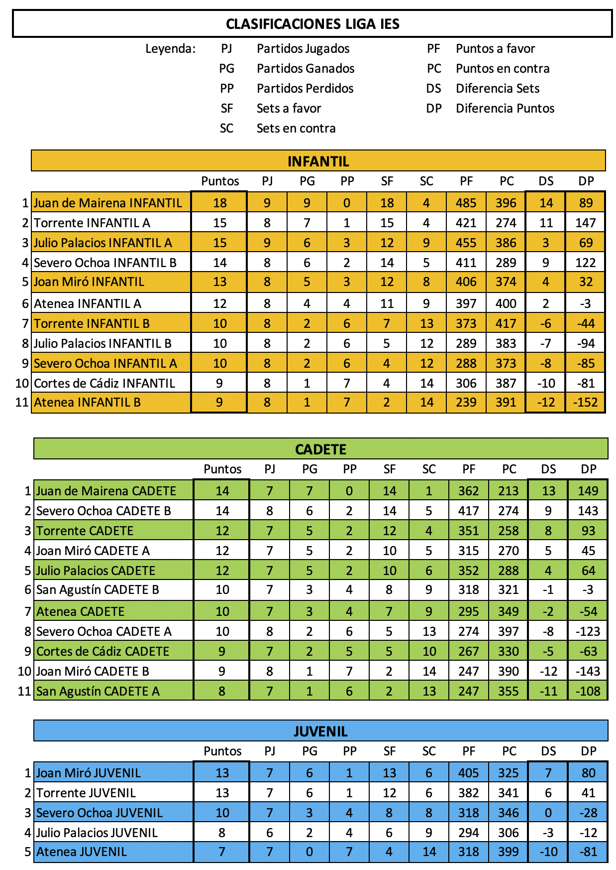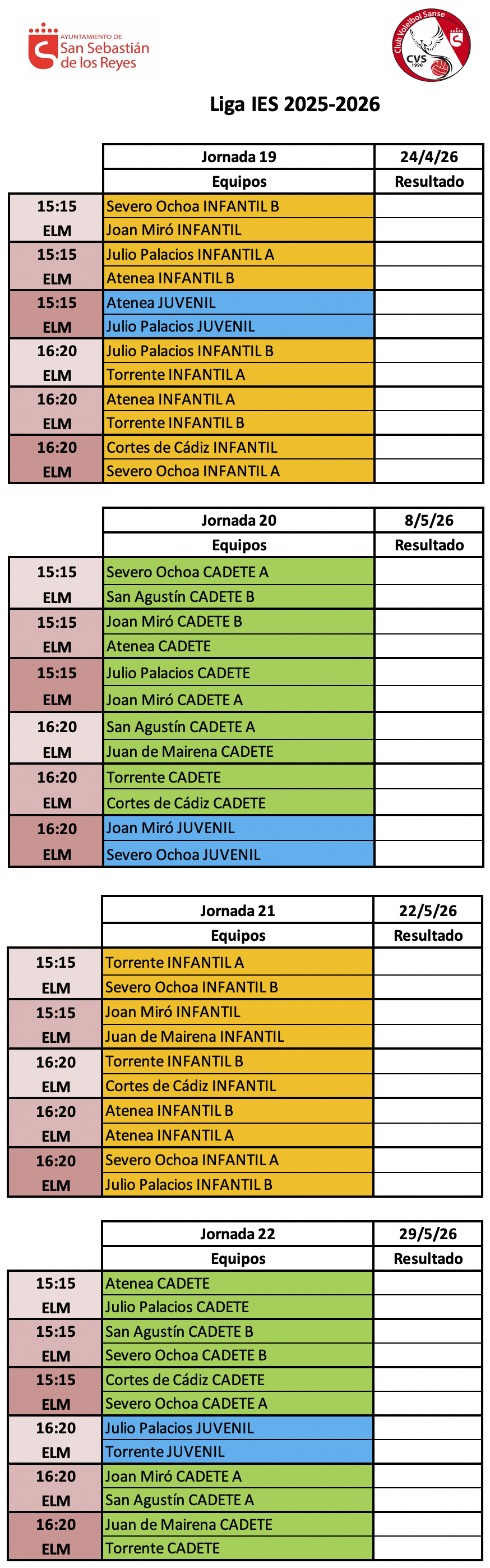 - Los partidos se desarrollarán al mejor de 3 sets, siendo los dos primeros a 25 puntos y el tercero, en caso de empate, a 15.